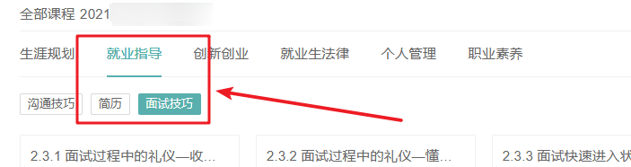 线上观看培训视频,并提交完成截图(仅需完成“就业指导”模块中的“简历”和“面试技巧”两个专题的课程,见下图)。