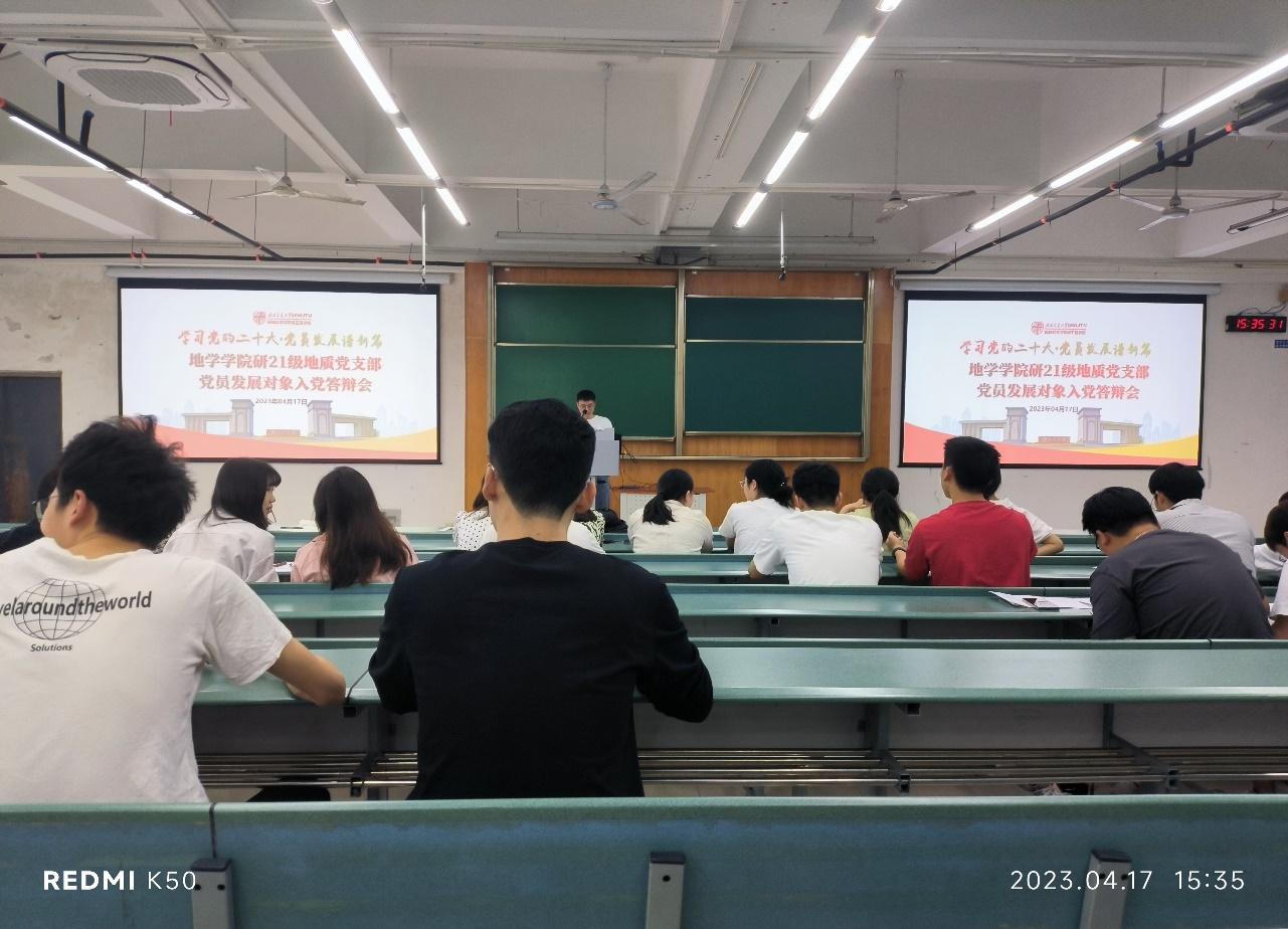 为积极配合上级党委的党员发展工作指示,切实提高我支部党员发展对象的综合素质,把握好党员发展的每一道关卡,研21级地质党支部于2023年04月17日星期一下午15:30通过线下为主,线上为辅的结合形式召开发展对象候选人答辩会议,会议由支部书记刘杰主持,共计有21名正式党员,5位预备党员及12名符合发展对象选拔条件的候选人参加,支部内的积极分子也尽数线上会议进行观摩学习。