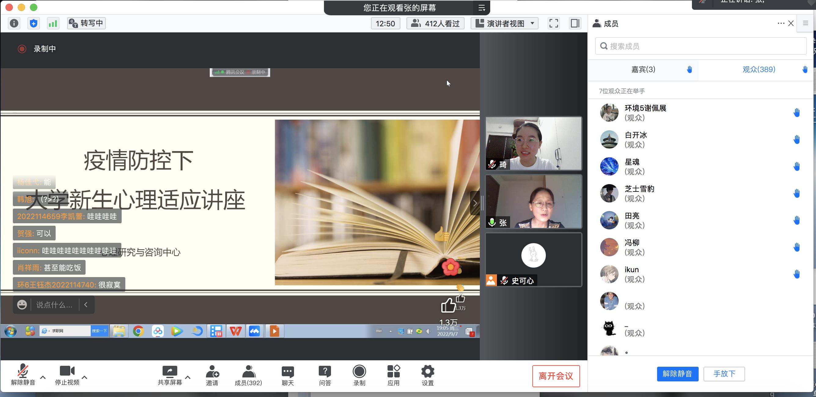 2022年9月7日19:00,为提升大学新生心理健康素养,解决同学们在生活中的困难,使同学们更好更快地适应疫情防控下的大学生活,肉番