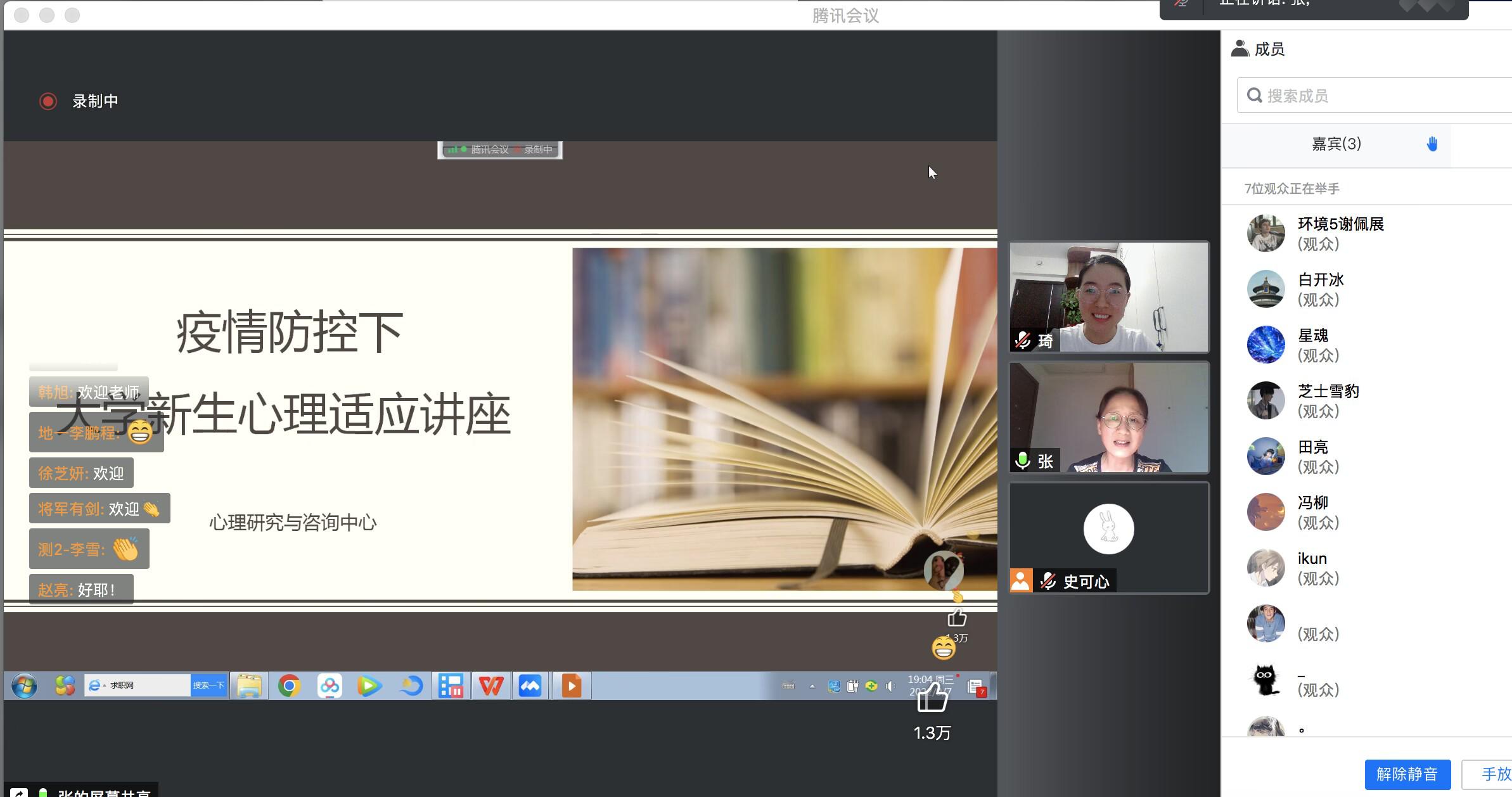 通过腾讯会议举办了以“阳光心态,幸福人生”为主题的大学生心理健康教育讲座。本场讲座由心理研究与咨询中心的张涛老师主讲,分管肉番