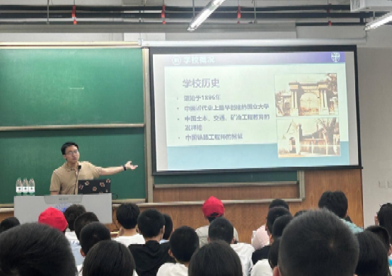 团委书记杨都强首先阐明了交通对国家发展的重要性,强调我校在国家交通事业的重要地位,并为八二一中学师生详细介绍我校概况、师资力量及招生情况。随后,学生会主席团成员张熙为在场同学们分享高中学习方法,以“追风赶月莫停留 平芜尽处是青山”激励大家努力拼搏,不惧挑战。