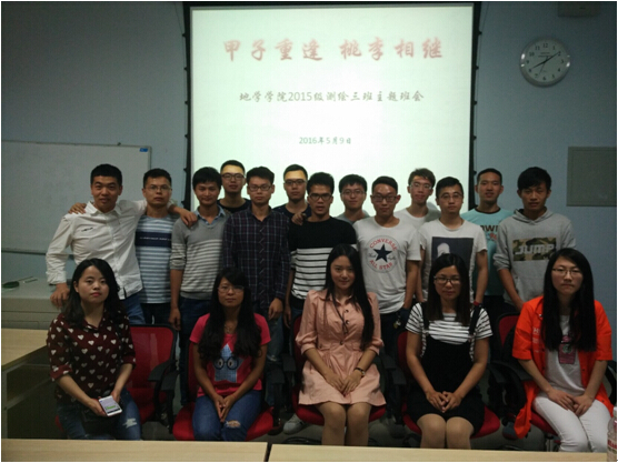 2015级硕士测绘工程三班举办的“甲子重逢,桃李相继”主题班会在犀浦X9135教室顺利举行。本次活动由班长谭倩兰主持,测绘三班全体人员参加。