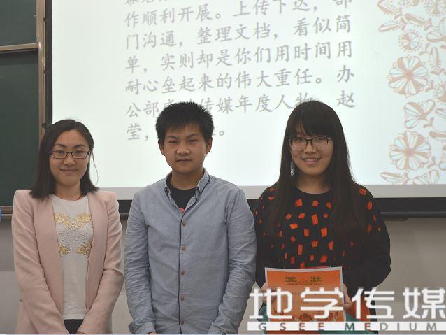 传媒中心第一届“地学传媒,永不相忘”暨“感动传媒”年度人物颁奖典礼顺利举行,地学传媒中心指导老师王静雅、前任主席王之栋作为嘉宾出席了颁奖典礼。