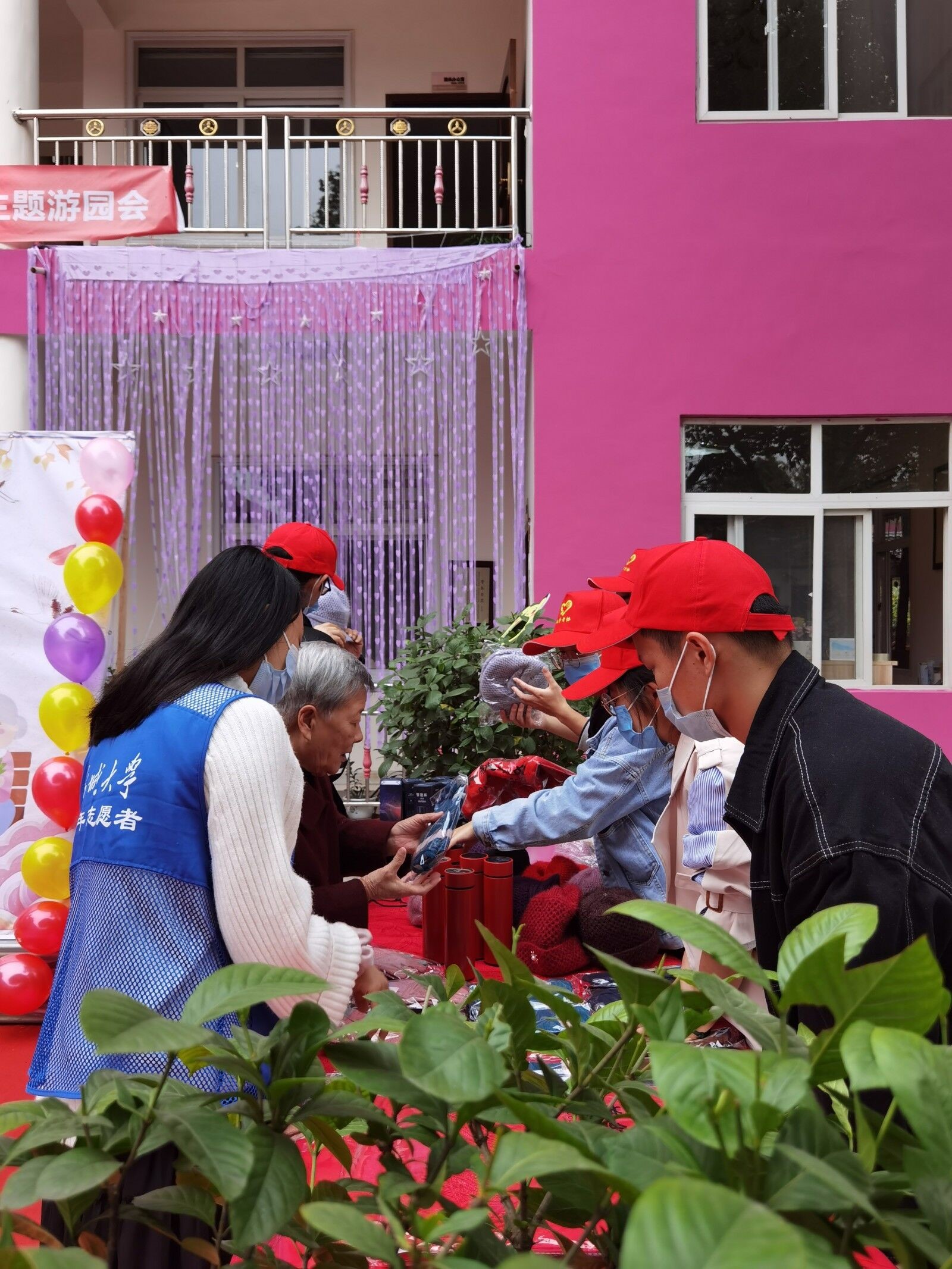 东校门,经过二十分钟的骑行,来自西南交大地学青协的志愿者共13人抵达了位于方安路的颐园敬老院。进行进门前的登记消毒后,志愿者马上投入了搀扶老人、安排座位、帮助布置现场的工作。敬老院的老人们难得迎来了这么热闹的时刻,在老人们欣喜又期待的目光注视下,志愿者们也不由得干劲满满。