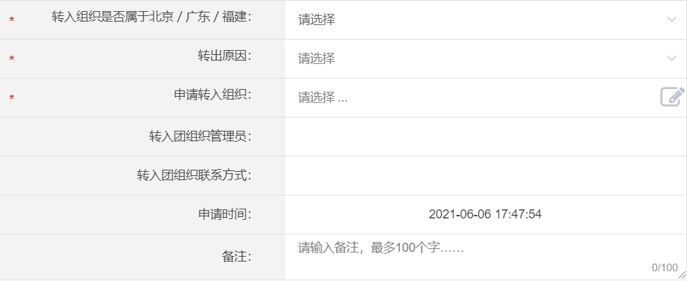 已经申请转入肉番 团委的同学将会被驳回,请有上述情况的同学重新进行团关系转接操作。