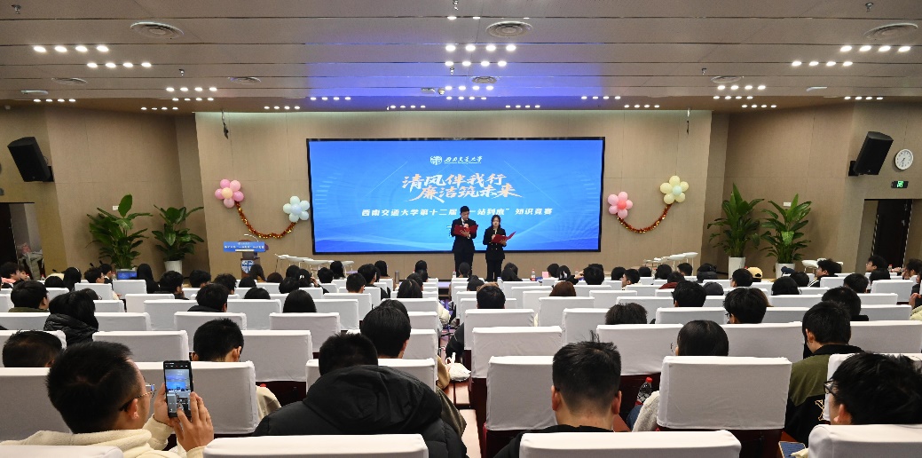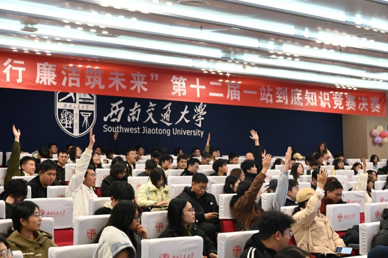 承办的第十二届“一站到底”知识竞赛决赛于犀浦校区图书馆二号报告厅顺利举办。本次大赛以“清风伴我行,廉洁筑未来”为主题,旨在通过知识竞答的形式,全面贯彻党的二十大和二十届历次全会精神,锲而不舍落实中央八项规定精神,引领青年学生守好廉洁底线,让青春行稳致远。